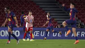 El punto de quiebre pudo darse al 35’, con un penal provocado por Dani Olmo tras una acción de Barrios, pero Robert Lewandowski envió el disparo por encima del arco. Baena salió lesionado al 62’ y entraron Almada y Sorloth. El encuentro seguía siendo del Barça, y Dani Olmo lo confirmó nuevamente al 65’ con un remate desde el borde del área al poste izquierdo de la portería rojiblanca, aunque terminó resentido del hombro.